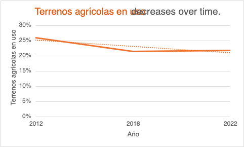 El Censo de Agricultura de 2022 reporta 7,602 fincas y 494,481 cuerdas agrícolas en Puerto Rico (21.9% del territorio). Aunque el número de fincas cayó respecto a 2018, el área agrícola total aumentó levemente (≈1.4%), reflejando concentración y necesidad de eficiencia. Esta estructura presiona a producir más con menos manos y bajo mayor variabilidad climática, de ahí el rol de la agrotecnología, introducirla más a la agrícultura.